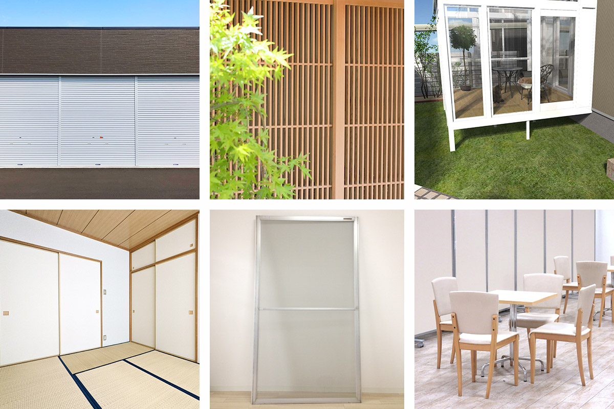 窓枠やサッシ、カーテンウォール、シャッター、自動ドア、ふすまなど、建物設備に取付けるパーツのことで、建物の機能性や気密性、耐久性を高める役割をもちます。